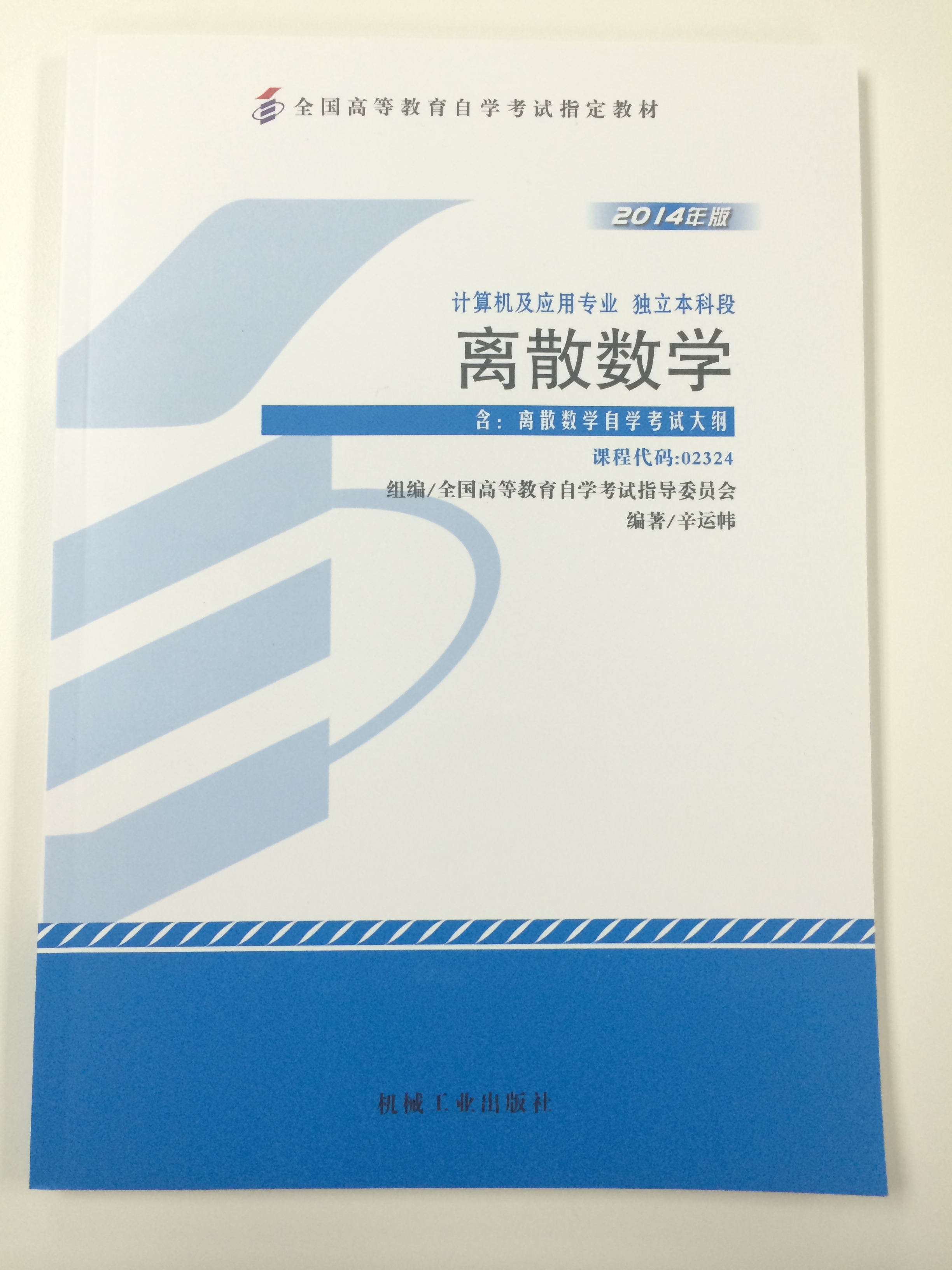 由全国考委组编的全国高等教育自学考试计算机及应用专业(独立本科段)《离散数学》新教材,近日由机械工业出版社出版,北京梅迪亚图书资料供应中心发行。该教材既适合于全国高等教育自学考试计算机及应用专业的学生和指导教师使用,也可作为计算机网络、计算机软件、计算机通信工程等相关专业学生的参考教材。新教材自高等教育自学考试2015年4月份考试启用。